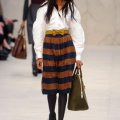 Burberry Prorsum jesenzima 2012 obiluje sa mnostvo detalja od koze. Masne na kaisevima, torbe i rukavice sa nitnama, olovka suknje s naborima u kombinaciji s kratkim jaknama vizija su ove modne kuce.